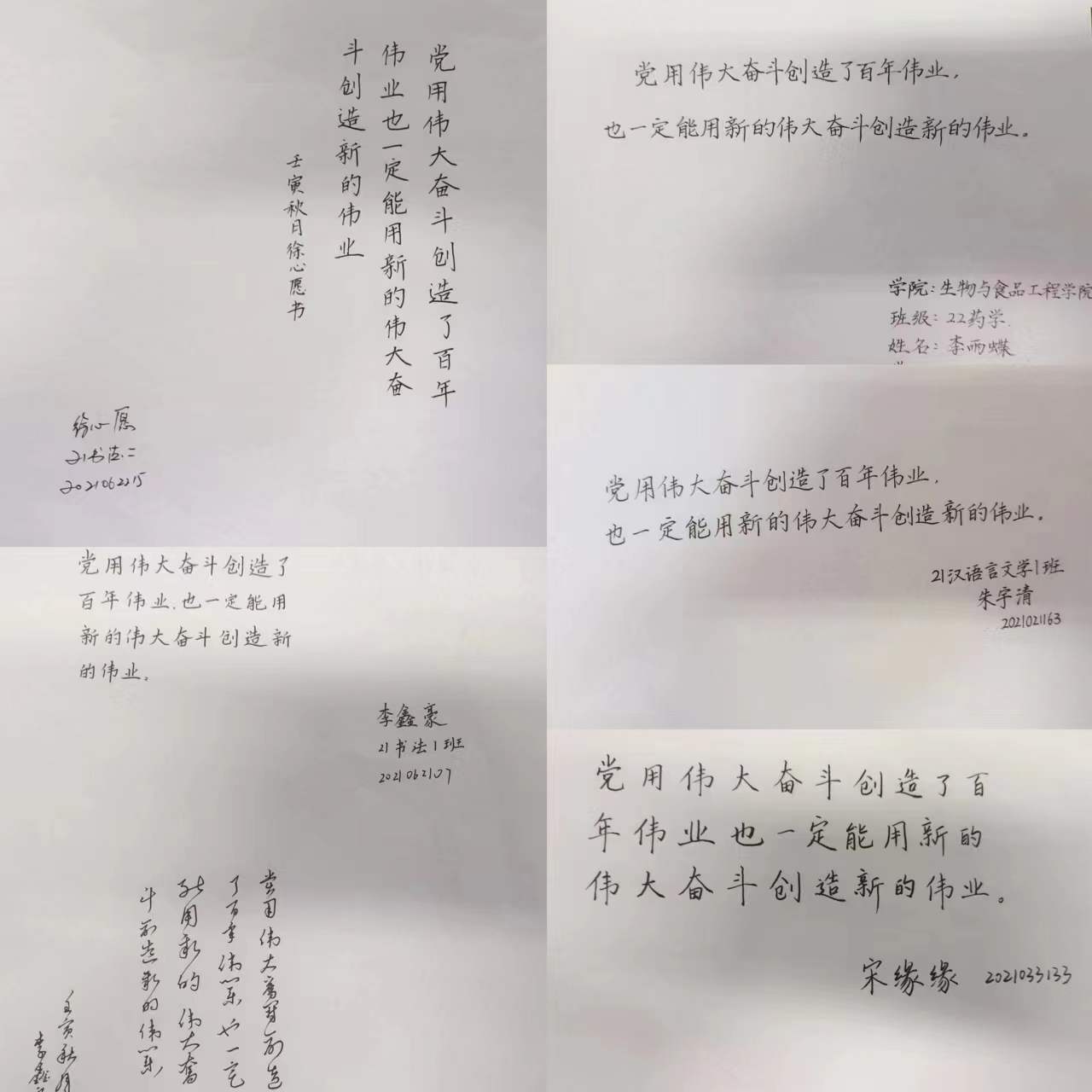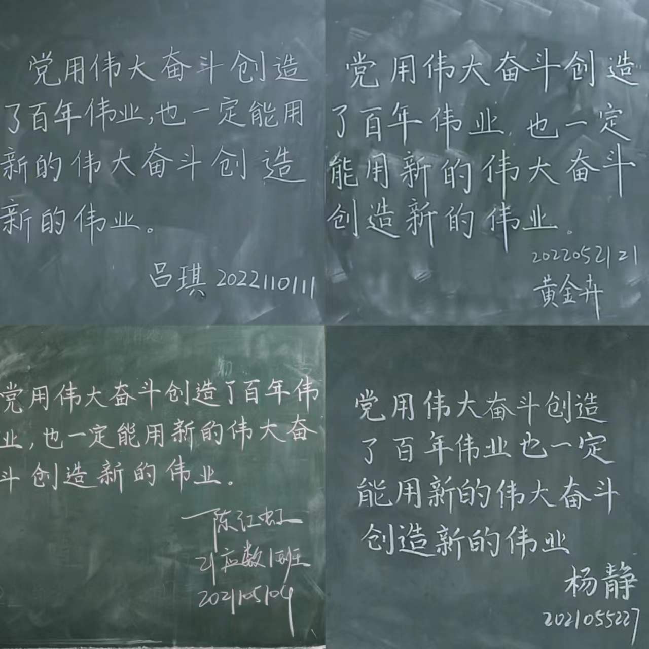 此次大赛前期在全校积极宣传策划,广泛动员,比赛以“不忘初心,方得始终”为主题,分为粉笔,钢笔,毛笔三个单项。共有551名同学报名参加,其中粉笔字288人,钢笔字174人,毛笔字89人,同学们以爱国精神、爱党热情为出发点,热情参与,坚持以立德树人为创作导向,书写“党用伟大奋斗创造了百年伟业,也一定能用新的伟大奋斗创造新的伟业”等爱国爱党以及党风廉政文化主题,尽情展现自己的才能,使同学们在书写中感悟党的伟大精神,赓续精神基因。在志愿者的现场组织下,比赛井然有序。