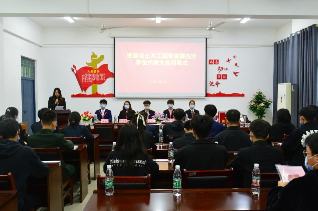 大会分为三个阶段共九项议程。第一阶段,在雄伟庄严的国歌中,资源与土木工程学院第四次学生代表大会正式开幕。会议伊始,张持堂代表资源与土木工程学院致开幕词,对资源学院学生会工作给予了充分的肯定,对一直辛勤付出的学生会干事表示衷心的感谢,并预祝本次学生代表大会能够圆满结束。