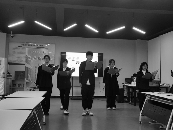 紧接着,学生代表高晨冉、王天赐、杨梦蝶分别为大家讲述中国女排和女排教练郎平的传奇故事,引出了同学们对中华体育精神和中国女排精神的热议。侯老师指出女排精神定义为“祖国至上、团结协作、顽强拼搏、永不言败”,是中国女子排球队顽强战斗、勇敢拼搏精神的总概括。在2021年9月,女排精神被纳入中国共产党人精神谱系第一批伟大精神。随后,五位学生代表带来了诗歌朗诵《体育颂》,将论坛推到了高潮,唤起了广大青年对“中华体育精神”和“女排精神”的认知情感和民族自豪感。