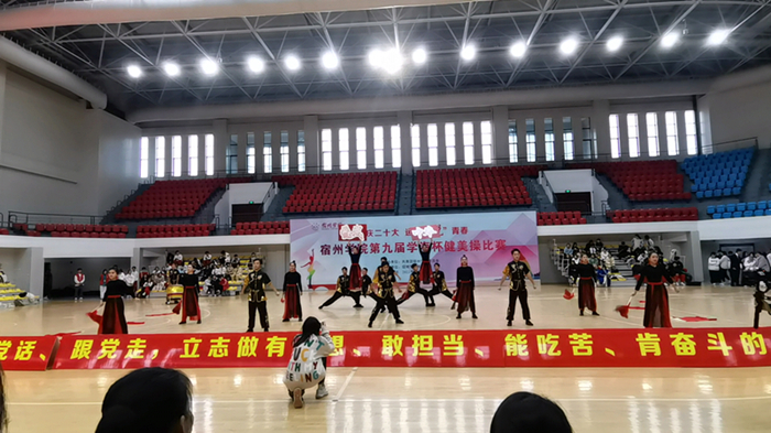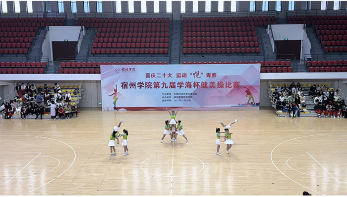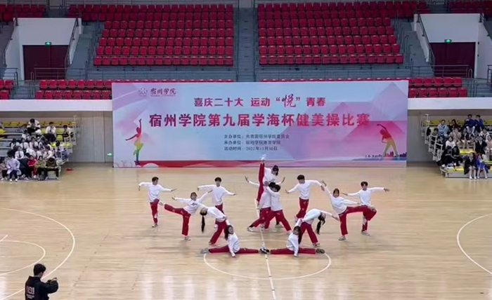 11月27日,为期两周的专业实践在紧张的训练和筹划中结束了。宿州学院第九届学海杯健美操比赛于11月30日下午正式开始,学生们以“喜庆二十大,永远跟党走,奋进新征程”为主线,展演了《奔跑的青春》《我和2035有个约》《一起向前飞》《一起向未来》《华夏》《星火永相传》《亦有少年凌云志》《我和我的祖国》《建功新时代》《携手向未来》《我们都是追梦人》《献礼二十大·舞动新时代》《青春梦想》和《阳光女孩》14个主题故事。各参赛队伍以同样的激情不一样的舞蹈赢得观众们的阵阵掌声。在比赛中,我们可以看到,参赛的各支队伍从舞蹈的编排到音乐选择,从整体构思到动作推敲都充分体现了同学们的智慧和创造力,也检验了我院学生理论与实践相结合的能力。