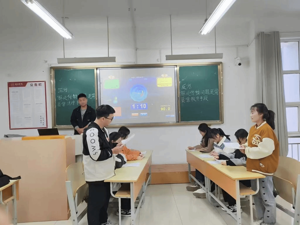 “慷慨陈词抒己见,唇枪舌战论传销”,为让学院学生深刻意识到传销组织的危害性,增强同学的正义感,开展反传销辩论赛。此次辩论赛的正方秉持着“解决传销问题更需要靠法律手段”的观点,而反方更倾向于“解决传销问题更需要靠教育手段”的观点。双方辩手妙语连珠,让人应接不暇,连连惊叹,辩论中字字珠玑的你来我往扣人心悬,选手们无隙可乘的逻辑与言之凿凿的语句也让人啧啧称赞。双方围绕“什么是传销、传销的常见手段、传销的危害以及作为大学生如何远离传销”展开了详细的解释,让同学们深刻意识到反传销的重要意义。