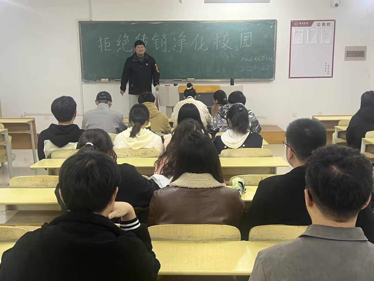 各班级开展主题班会,围绕传销类型、传销模式、典型案例、防范手段等方面进行学习宣传,对于电信诈骗的常见形式,大家在网络贷款、刷单返利、冒充他人、注销校园贷、网络虚假信息等诈骗手段进行了认真的学习。鼓励同学们积极维护自身权益,提高防范意识,营造共同参与打击传销的氛围。