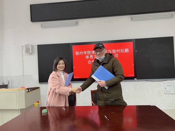 周美倩介绍了宿州玩酷体育文化有限公司的发展历程、经营业绩、企业发展愿景以及在校企合作方面取得的成果。并对体育学院取得的成绩给予了高度评价,表达了本次合作的诚意,希望通过合作办学共同培养高素质、高技能水平的体育人才,实现学生、学校、企业三方共赢。双方就合作办学的细节进行了深入洽谈,在人才培养、合作预期等方面达成了高度的共识,现场签署了合作办学协议。