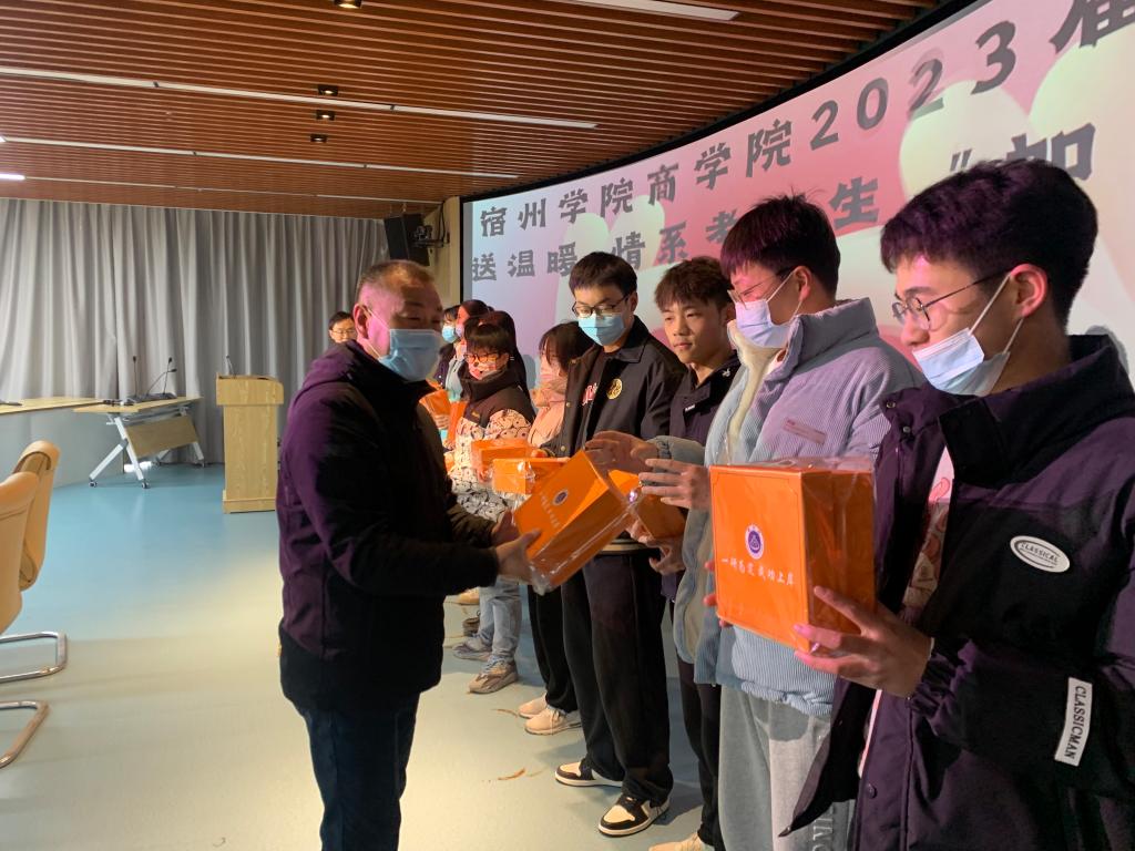 随后,学院将255份提前准备好的“加油礼盒”送到每位考生手中。礼盒中印有“一研为定、成功上岸”的祝福语,礼盒里装有印有商学院院徽的纪念品,以及来自商学院全体老师的考研寄语卡片。“图书馆留下了你们晨读夜背的身影,自习室留下了你们埋头苦读的身姿”,商学院全体教师祝福考研学子全力以赴,成功逐梦,金榜题名。同学们纷纷表示:“在这个寒冷的冬季,我们收到了学院的考研祝福礼物,真的是太暖心了!”“漫漫研途,我们从来不是孤单一人”