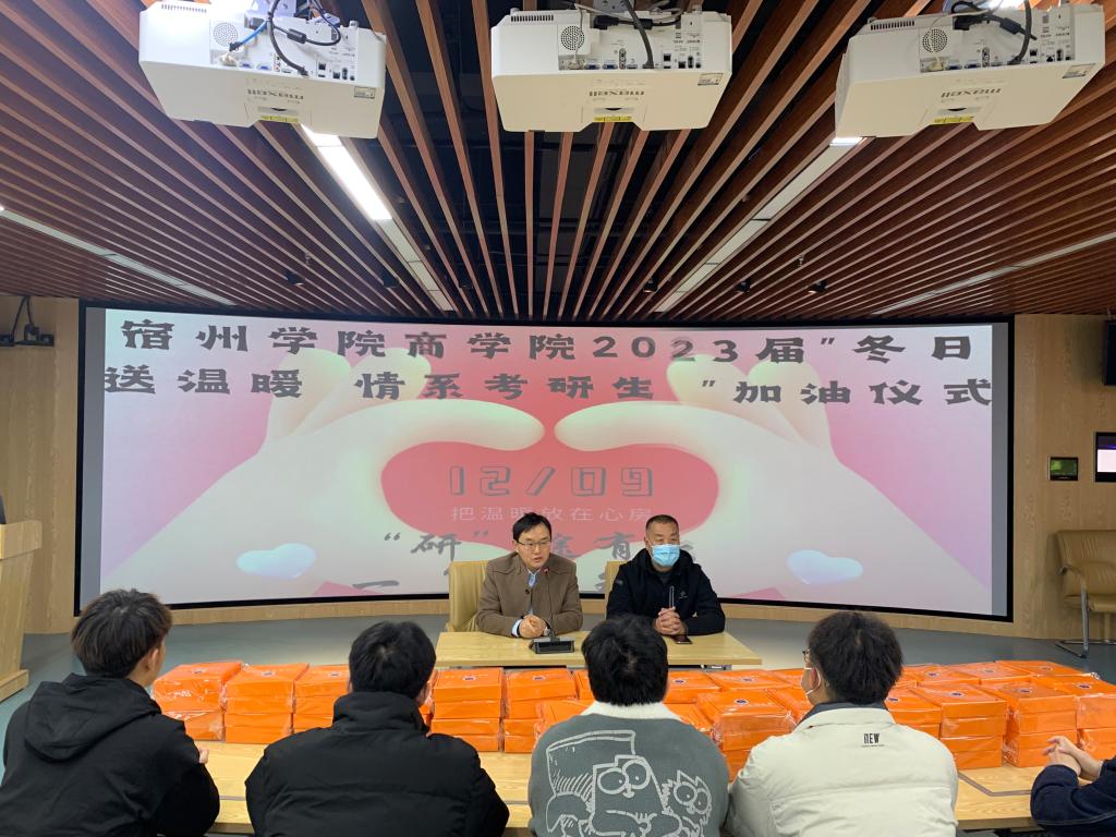 为了激励2023届考研学子冲刺加油,表达学院对考研学子的关心关爱,12月9月下午,商学院在实训楼B215举行2023届“冬日送温暖 情系考研生”加油仪式。商学院党委书记肖良,党委副书记、纪委书记周亚,以及2023届考研学子代表参加了本次活动,活动由商学院分团委副书记曹超超主持。