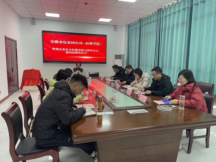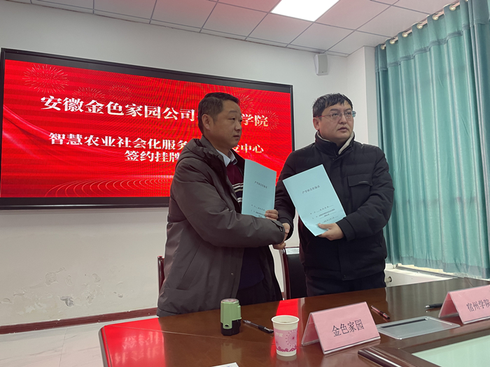 余晓永一行前往位于宿州市高新区的安徽金色家园农业社会化服务有限公司,受到了企业代表的热情接待。金色家园总经理孙韩介绍了安徽金色家园农业社会化服务有限公司的发展历程、企业文化、发展战略等方面的情况。她表示,企业正处于转型升级的关键时期,只有强有力的人才支撑才能实现企业的蜕变,希望与信息工程学院就人才培养、实习实训、资源共享等方面建立长期的合作关系。许海峰从办学规模、人才培养、学生就业、校企合作等方面介绍了信息工程学院的基本情况以及服务地方经济情况。会后现场签订了校企合作协议书,完成了就业基地授牌仪式。