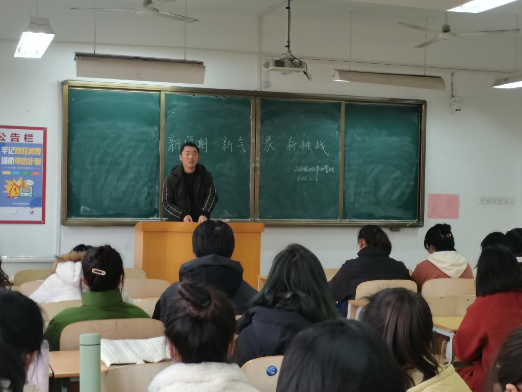 召开一次主题班会。辅导员以“新学期,新气象,新挑战”为主题召开各班级班会,班会围绕期末考试备考、学业和职业规划选择以及做好身心健康调整等发展保障工作等方面展开。主题班会对班级同学身心健康、学业、职业选择产生了积极影响。