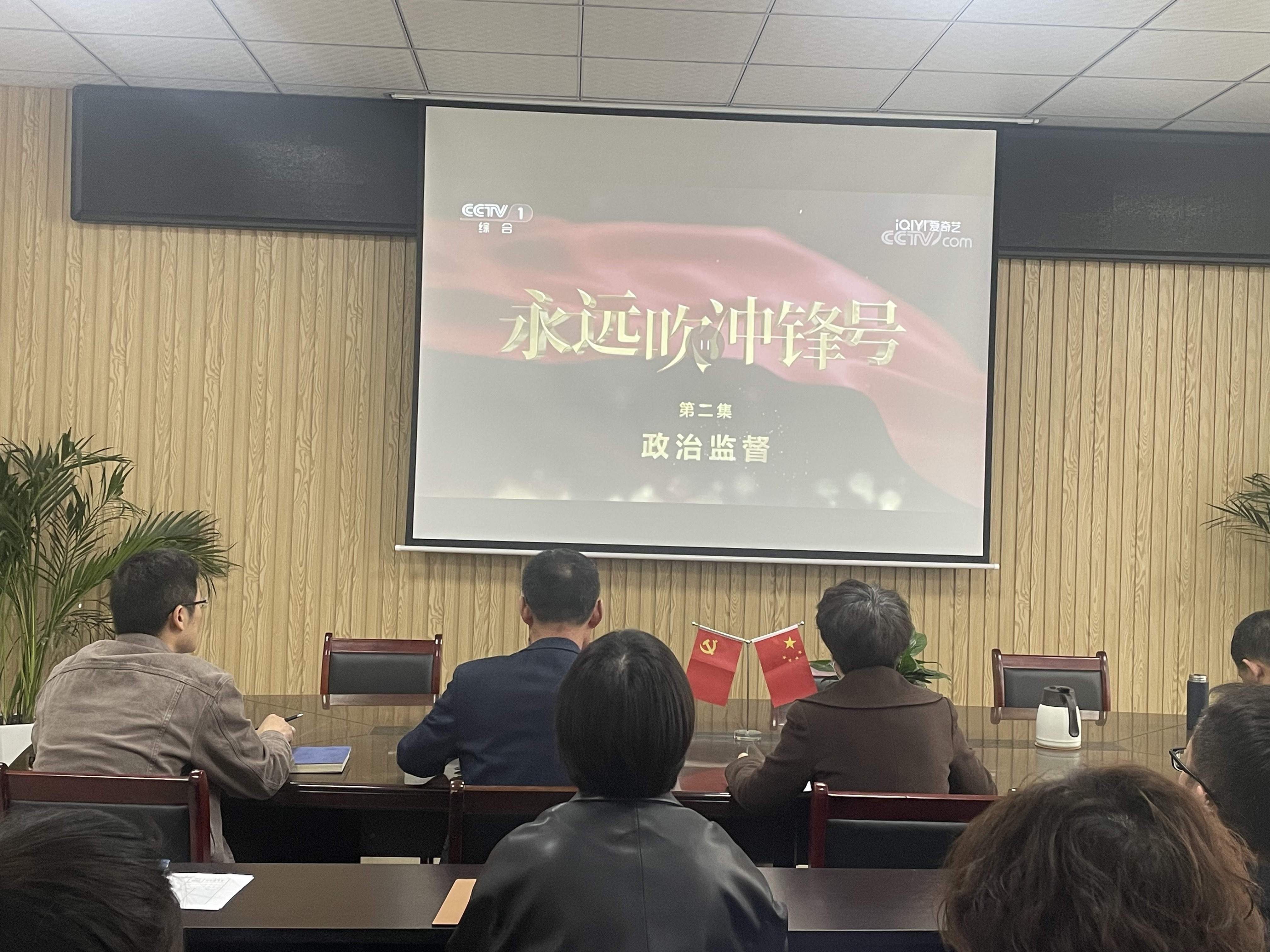 集中观看前,党委副书记、纪委书记张亚锋领学了《中国共产党廉洁自律准则》《中国共产党纪律处分条例》,传达了习近平总书记在第二十届中央纪委二次全会上发表的重要讲话精神,强调各党支部要认真组织师生观看教育片《永远吹冲锋号》,切实抓好党风廉政警示教育,教育全体党员做到引以为戒、警钟长鸣,把新时代党的伟大自我革命进行到底。