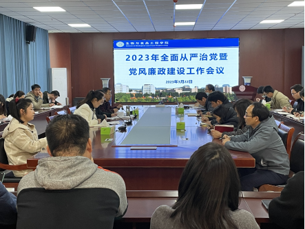 3月22日下午,生工学院在实训楼A1105会议室,召开2023年全面从严治党暨党风廉政建设工作会议,学院党委书记赵亮主持会议,学院全体教职工参加。