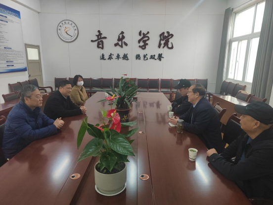 会上,王善虎详细介绍了音乐学院的发展情况及未来发展规划,尤其是在学科建设、人才培养工作上的成绩。音乐学院现有音乐学、学前教育、表演(泗州戏)、舞蹈表演四个专业。课程体系丰富、课程结构科学合理,专业课程涵盖舞蹈、民乐、西洋乐等社会急需专业,足以支撑培养面向社会需求的应用型人才。2022年度音乐学院经过内培外引目前已发展教职工人数至62人,其中教授2人,副教授16人;博士21人(含在读),硕士31人。何校长对我院近年来取得的成就给予高度赞扬,表示希望通过这次考察交流,学习和借鉴我院在教育教学等方面的先进经验和办学特色,同时,希望今后进一步加强校际深度交流与合作,增进友谊,共同推进两所院校事业的健康发展。