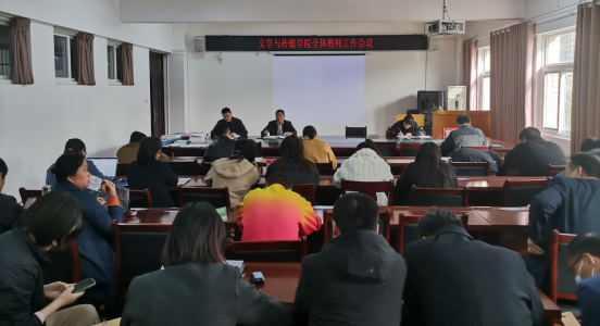 3月15日下午,文学与传媒学院在教A303召开全体教师工作会议,党委副书记、院长张德岁,副院长李娟、满建及全体教师参会。会议由张德岁主持。