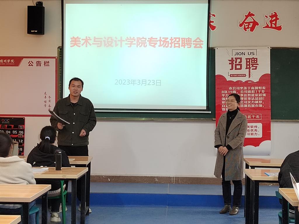 为贯彻落实就业政策方针,拓展就业渠道,实现美术与设计学院2023届毕业生高质量充分就业,3月23日,美术与设计学院在艺术楼C201开展专场招聘会,学院2023届在校毕业生参加。此次招聘会有宿州市埇桥区卡特尔展柜制作中心、宿州中辰广告传媒有限公司、宿州品冠E家参与。