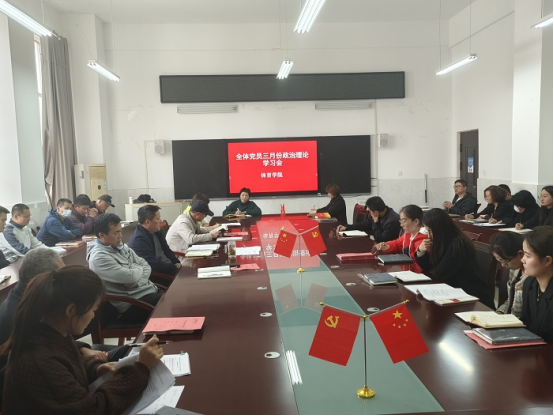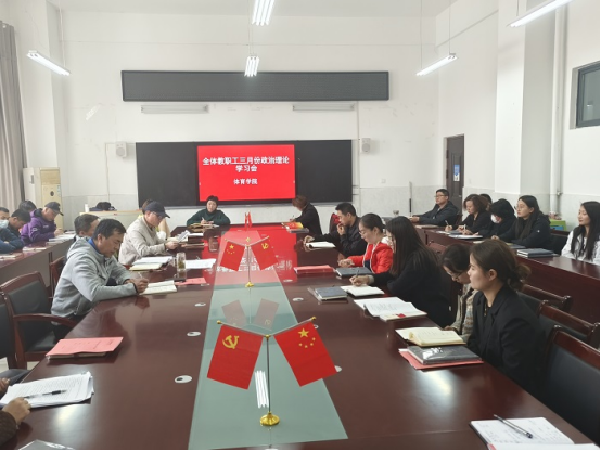 2023年3月28日中午,体育学院召开三月份全体党员、教职工理论学习会,体育学院全体教师参加学习会。学习会由李高主持。