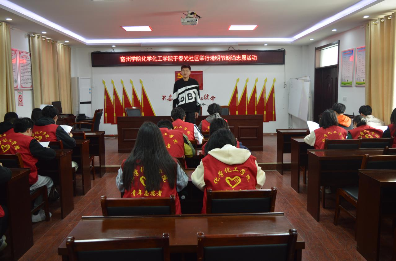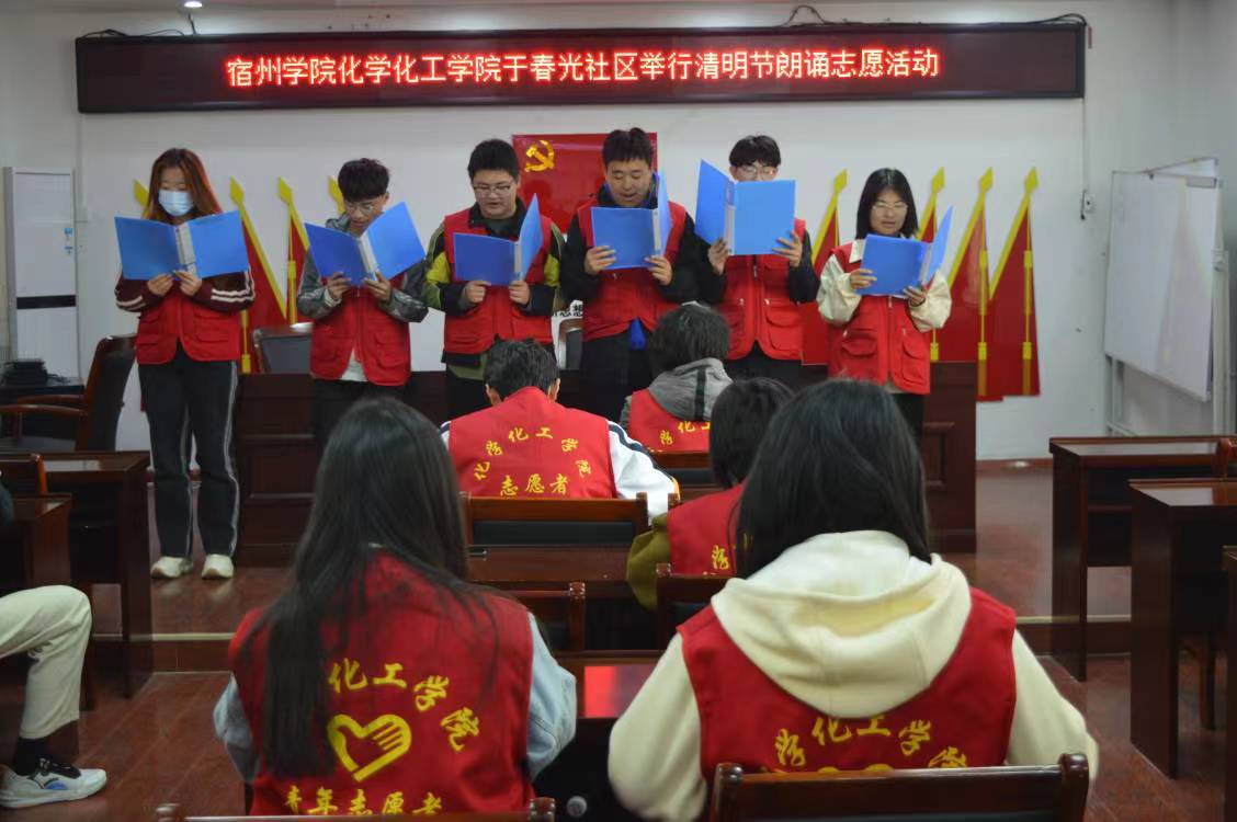 为缅怀革命先烈,弘扬爱国主义精神,加强传统文化教育,充分发挥青年志愿者在社区服务工作中的作用,在清明节即将到来之际,化学化工学院青年志愿者分队赴春光社区举办“诵清明诗词,缅怀革命英烈”诗词朗诵活动,缅怀革命先烈,树立文明祭祀新风尚。