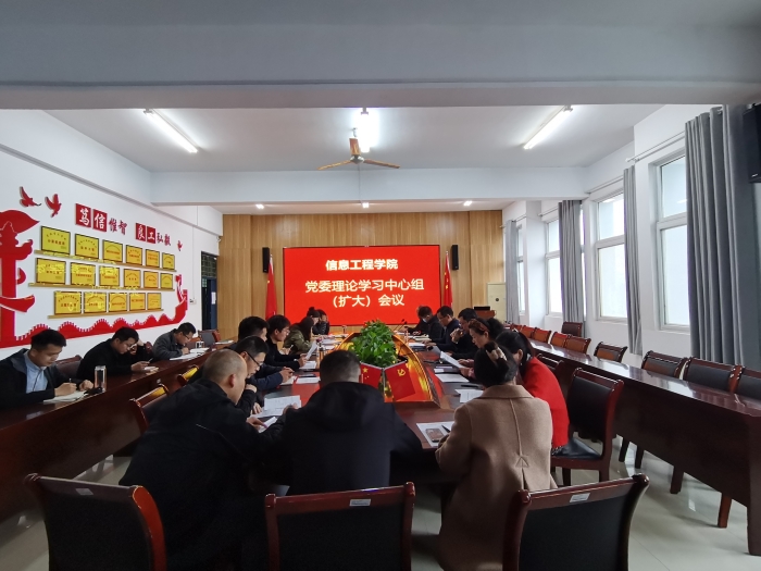为深入学习习近平新时代中国特色社会主义思想和党的二十大精神,4月4日中午,信息工程学院在工B315召开党委理论学习中心组(扩大)会议,会议由信息工程学院党委书记余晓永主持,信息工程学院党委委员、党支部书记、科级干部参加会议。