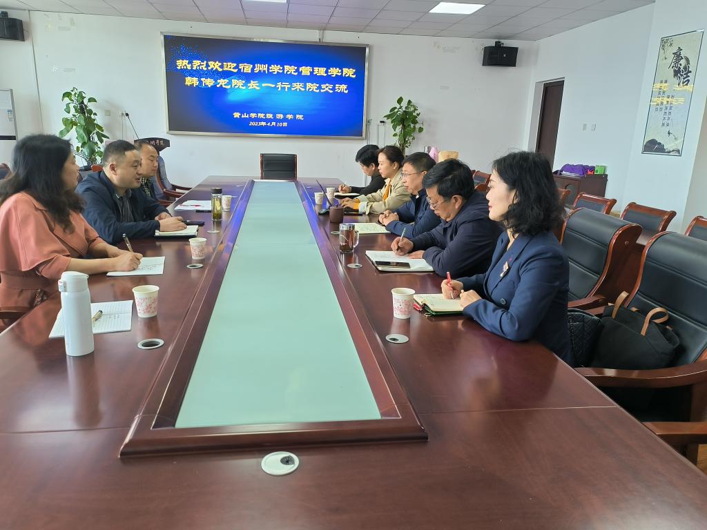4月6日,我院一行前往合肥学院旅游与会展学院学习考察。合肥学院旅游与会展学院院长宋玉军、教学办主任袁梦茹、教研室主任高飞、柳百萍教授等人参加了交流座谈。宋玉军对韩传龙一行表示热烈欢迎,并详细介绍了旅游与会展学院的办学历程、专业和实训室建设、合作办学、硕士点建设的相关经验,柳百萍、袁梦茹、高飞等详细介绍了人才培养方案修订、教师团队建设的主要做法及经验。韩传龙对旅游与会展学院的热情接待及细致分享表示感谢,简要介绍了管理学院的学科专业建设情况,并就人才培养方案修订、一流本科专业建设、专业实训室建设等工作进行了深入探讨和交流。