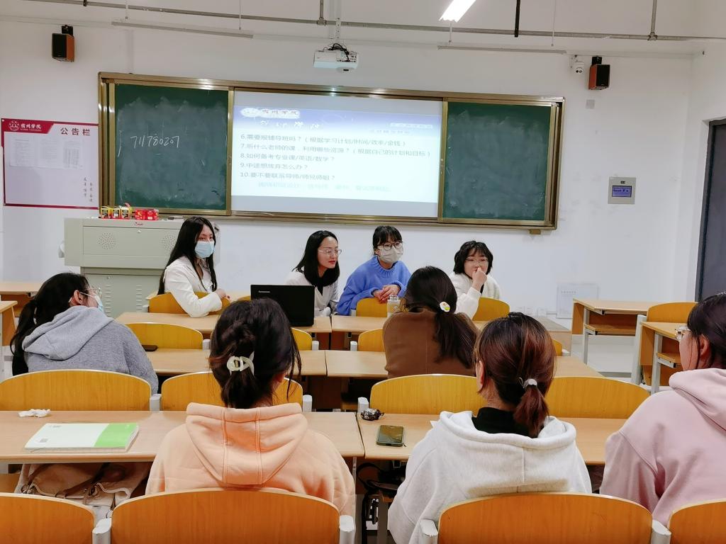 4月10日下午,杨晶、陈鹏、徐蒙,19级学生代表吴龙辉、王硕等师生在实训楼C210开展了大二学生专场辅导,从社会发展、行业需求、个人成长等多个方面向同学们分析了考研的必要性;引导同学们要做好自己的人生规划;以积极良好的心态做好考研信息收集工作,早谋划、早打算、早准备;提醒学生应谨慎选择培训机构,理性学习和备考;同时介绍了学术型硕士与专业硕士的区别,帮助考生选择一条更加适合自己的道路。吴龙辉、王硕同学分别从考研形势、备考环节、考研院校选择的重要性、考研复习的方法以及面试等方面分享了自己的心得体会,勉励学弟学妹们“研”阵以待,以梦为马,不负韶华。