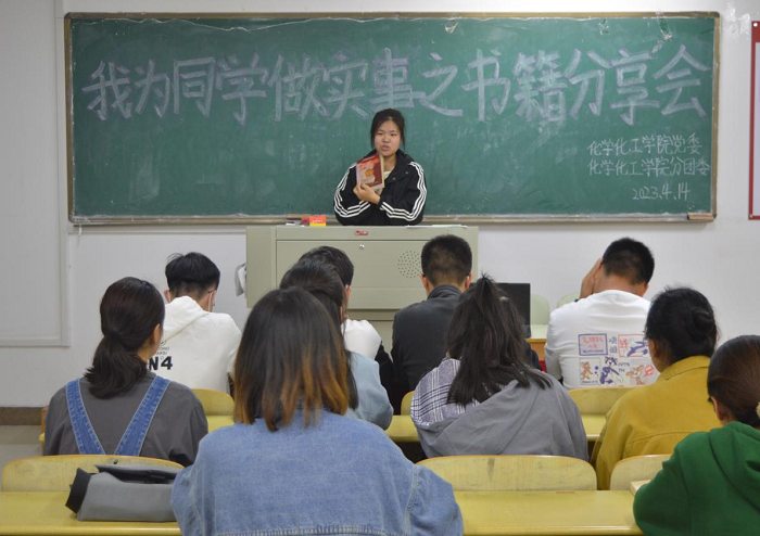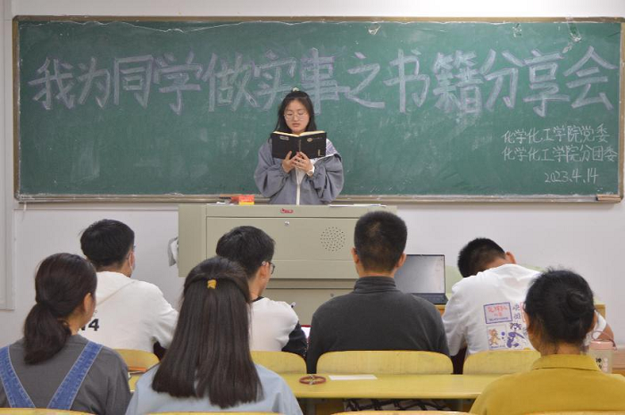 为深入贯彻落实党的二十大精神,号召全体学生做“敢想敢为又善思善成”的新时代好青年,化学化工学院于4月16日晚上7点,在逸夫楼B206举办“我为同学做实事”之书籍分享会活动。