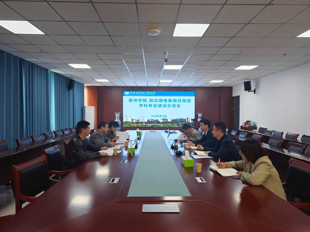 2023年4月21日上午,皖北煤电集团总医院科教科崔海豹科长、检验科胡恒贵科长和科研实验室李丽丽主任一行到生工学院开展校企合作交流。生工学院党委副书记、院长张兴桃,副院长王海潮、副院长翟科峰及科研秘书姚沛琳参加了本次会议。