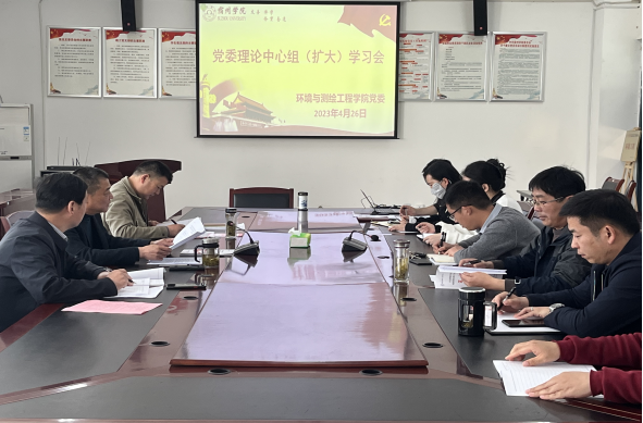 2023年4月6日下午,环境与测绘工程学院党委在工A315会议室召开党委理论中心组(扩大)学习会,学院党委中心组成员参加会议。学院党委书记胡冰主持会议。