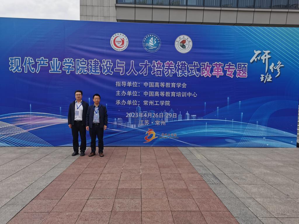 4月27-28日,由中国高等教育学会指导、中国高等教育培训中心主办、常州工学院承办的“现代产业学院建设与人才培养模式改革专题研修班”在常州举行。来自全国160多所高校的专业教师及有关科研院所、企业人员近700人齐聚常州,共同分享和探寻现代产业学院建设与人才培养模式改革的良法善策。我院商学院院长刘红军和实习实训中心主任胡发刚应邀参会,并与常州工学院经济与管理学院对接交流。