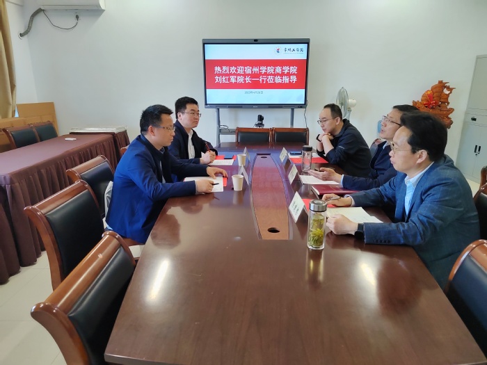 刘红军介绍了宿州学院的发展历程,从党建、人才培养、学科专业建设、高层次人才引进、产教融合、社会服务等方面介绍了商学院基本情况,重点围绕国家一流专业建设、现代物流产业学院、数字经济与乡村振兴研究中心建设等方面进行详细介绍。随后,双方重点围绕人才培养、一流专业建设、产业学院建设等方面进行了深入的沟通与交流,一致表示将进一步加强沟通交流、资源共享。