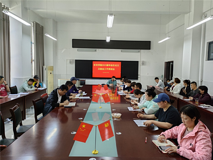 为进一步做好2023届本科毕业生论文工作,5月9日,体育学院在体院会议室召开了2023届本科毕业生论文及就业工作推进会,体育学院党委书记李高,党委副书记、院长白明,党委副书记王德玉及全体毕业论文指导教师参加了会议。会议由白明院长主持。