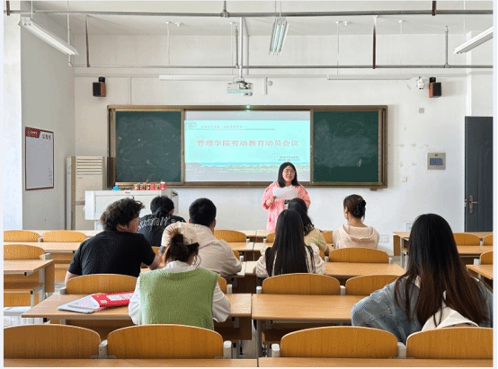 学院召开劳动教育动员大会,劳动教育周指导老师刘丰丰简要介绍开展劳动教育的背景和意义,并对此次活动的具体安排和注意事项进行了详细讲解和说明。