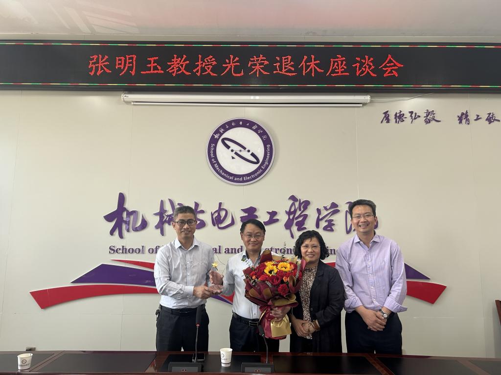 仪式上,杨杰首先对张明玉教授的光荣退休表示了热烈祝贺,对张明玉教授为机械与电子工程学院发展所付出的努力和贡献给予了高度的评价和感谢。朱光表示,学院目前处于快速发展时期,希望张明玉教授能够退休不退岗,继续关心和支持学院的各项工作。