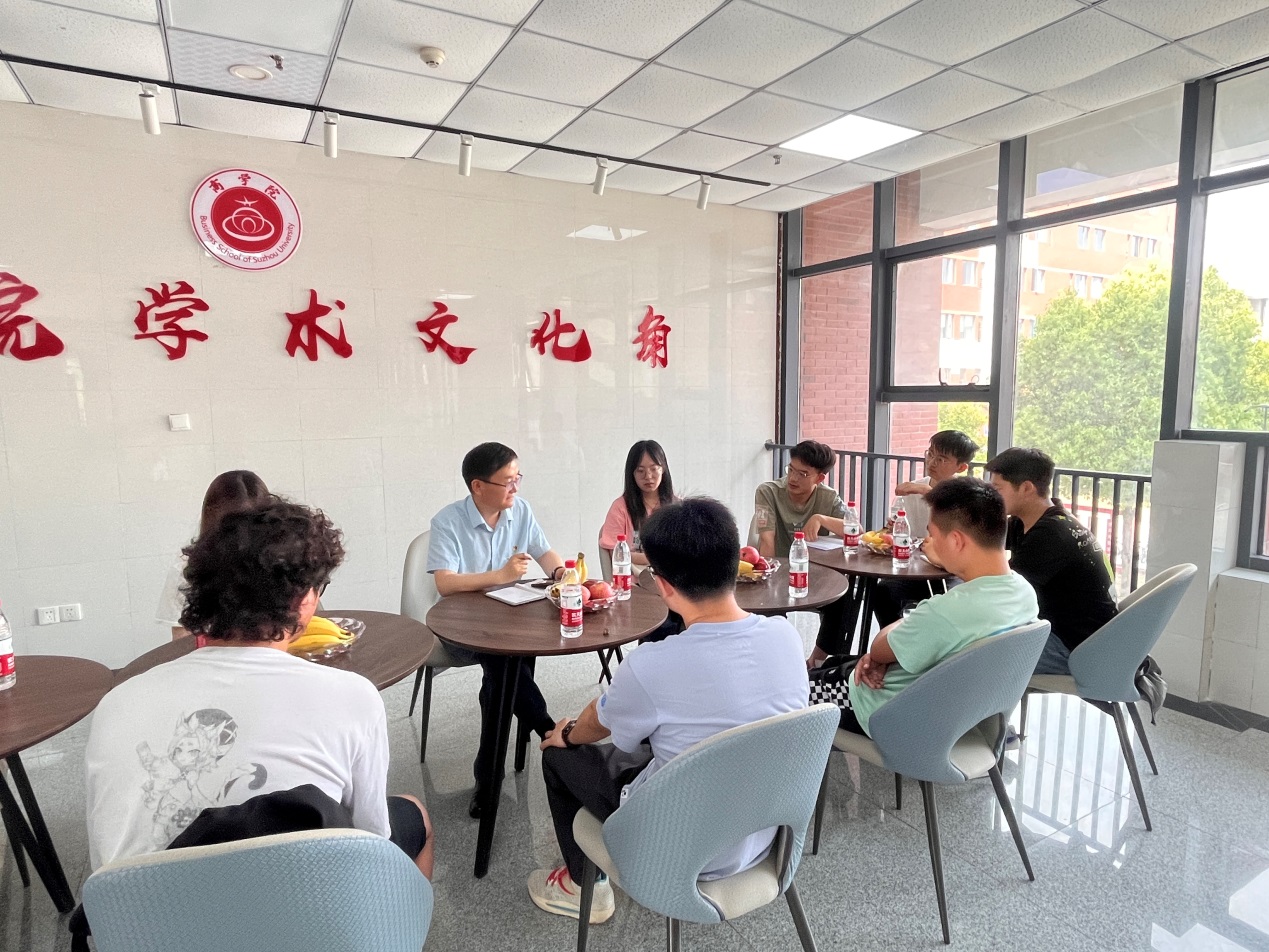 为深入开展学习贯彻习近平新时代中国特色社会主义思想主题教育,全面贯彻党的二十大精神,落实高校立德树人根本任务,5月17日下午2点,商学院于实训楼二楼学术文化角开展了第六期“书记面对面”暨主题教育调研交流座谈会。商学院党委书记肖良,党委副书记、纪委书记周亚以及大一、大二班级班长、团支书代表参加了此次活动。