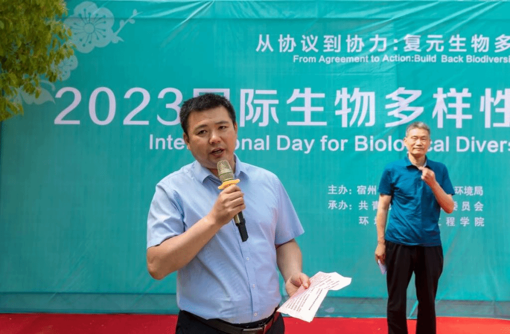 张海洋在致辞时表示,将以此次活动为契机,相继在宿州市动植物资源较为丰富的园区开展生物多样性调查及科普,以学院博士团队为主力,为新汴河、沱河等流域开展水生生物多样性调查及保护研究,为我市生物多样性保护和宣传提供借鉴。