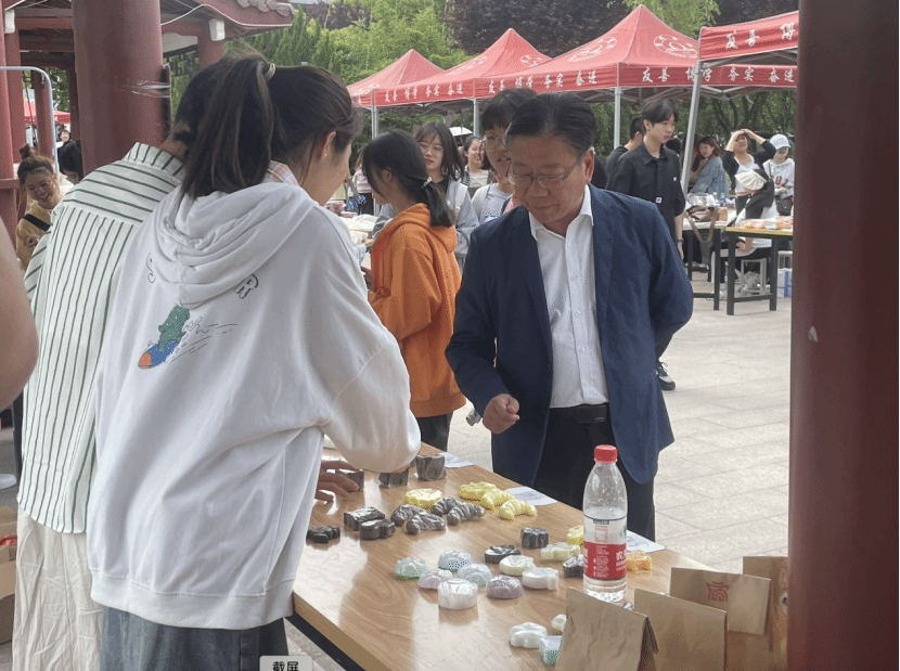 宿州学院党委委员、副院长杨维志,党委学工部部长李月云,校团委书记凌峰,国际交流与合作处副处长安晓斌等领导、老师参加市集。文创市集作为文学与传媒学院专业建设的品牌项目,连续举办五届,本届文创产品总共分为十余类,如扭扭棒、枝藤花、香薰蜡烛、奶油胶类手工艺品、手工皂、手工发簪、手工耳饰、创意滴胶等。21级文化产业管理的同学在创作过程中积极发散思维,从题材选择到材料选购再到最后的产品设计制作,完整构建了创作链条,体现了创意的魅力。
