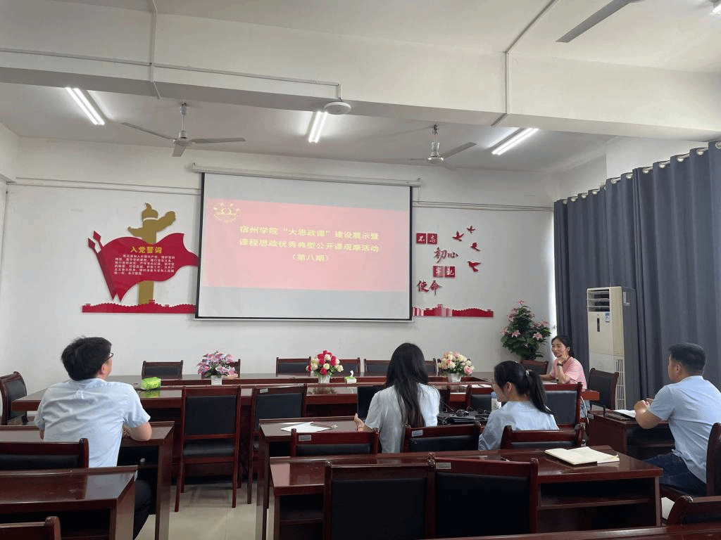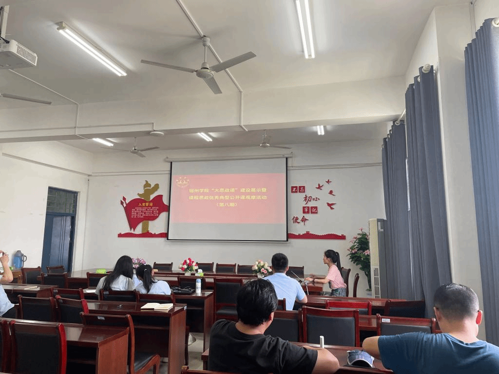 为学习贯彻习近平新时代中国特色社会主义思想主题教育,落实立德树人根本任务,进一步推进课程思政建设工作,宿州学院第八期“大思政课”建设展示暨思政课程优秀典型公开课观摩活动于6月2日9:30在工科楼A402顺利举行。本次活动由宿州学院教务处主办,资源与土木工程学院承办,邀请资土学院程琛、曹静、王芳三位老师进行课程思政优秀典型公开课的讲授。
