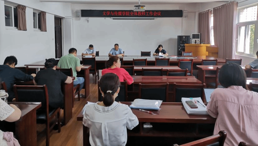 6月2日下午,文学与传媒学院在教A303召开全体教师工作会议,党委副书记、院长张德岁,党委副书记、纪委书记刘影,副院长满建及全体教师参会。会议由张德岁主持。