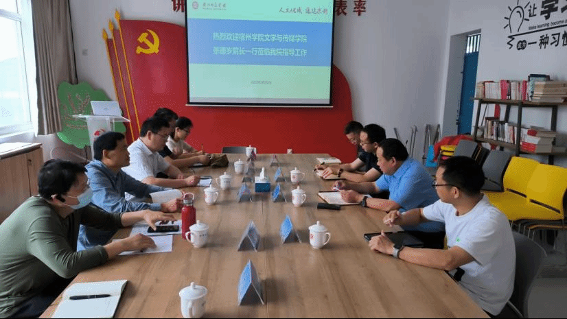 湖州师范学院文学院院长王绍峰、教学副院长刘旭青、科研副院长鲁卫东等接待了张德岁一行。会上,王绍峰对张德岁一行的到来表示欢迎。然后,就人文学院的开办历史、专业设置、硕士点建设、师资建设、科研成果、双基建设等方面进行了介绍。