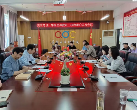 为扎实开展学习贯彻习近平新时代中国特色社会主义思想主题教育,5月31日,美术与设计学院在艺术楼B402会议室,召开全体教职工政治理论学习会。会议由党委书记陈述立主持。