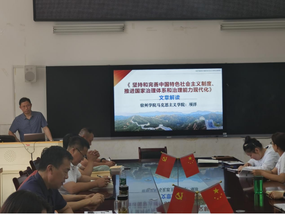会上,李高领学了《习近平:中国式现代化是中国共产党领导的社会主义现代化》和“安徽省优秀共产党员”齐永荣、吴志堂、宋文武、孟刚同志的先进事迹,传达了习近平总书记在北京育英学校考察时的重要讲话精神;集中学习后,项洋为全体教师党员上了题为《<坚持和完善中国特色社会主义制度、推进国家治理体系和治理能力现代化>文章解读》的专题党课。