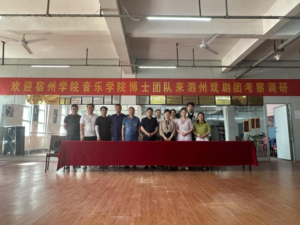 为加强校地合作,提高我院高层次人才的科研水平,做好国家级非物质文化遗产—泗州戏的传承与保护工作,6月21日,我院组织博士团队由王善虎院长亲自带队赴宿州市泗州戏剧团进行考察调研工作。