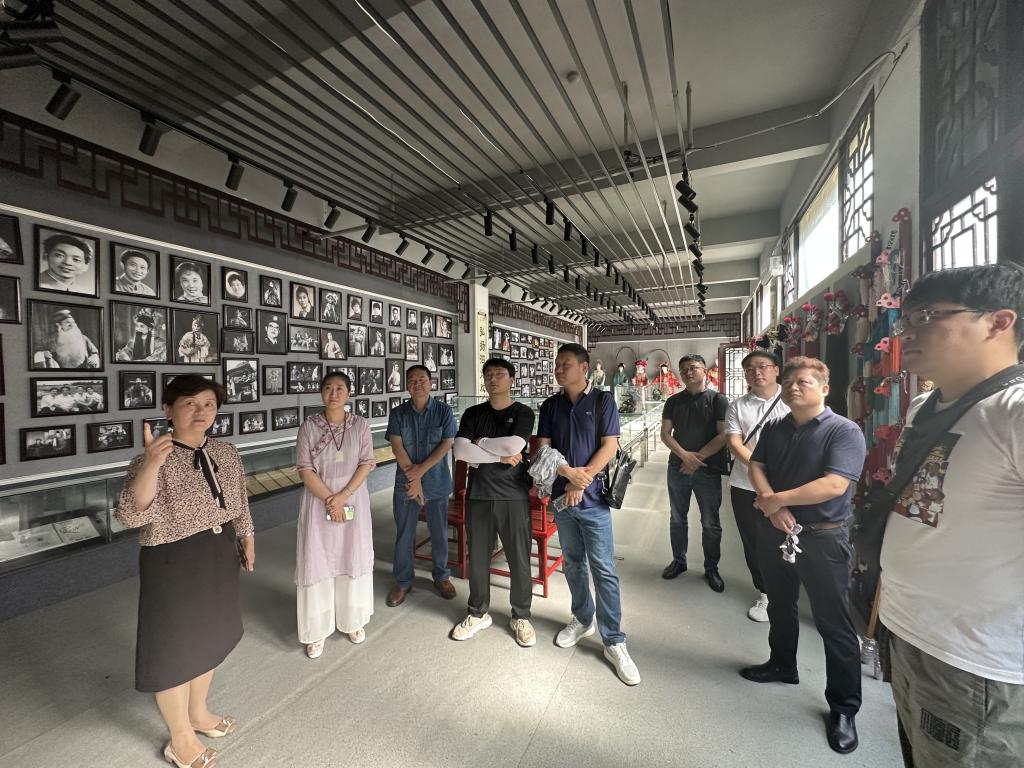 王善虎对我院博士团队进行了介绍。泗州戏剧团团长刘莉代表剧团对宿州学院的到来表示热烈欢迎,她表示,像泗州戏这样优秀的的传统音乐文化正需要高层次音乐人才进行深入的理论挖掘和文字传承工作,两家单位可以在更多方面进行深入合作。随后,泗州戏剧团的年轻演员为与会人员带来了精彩的泗州戏唱段展示。活动最后,刘莉团长带领大家参观了泗州戏非遗史展馆,为大家介绍了泗州戏以及宿州市泗州戏剧团的发展历程。