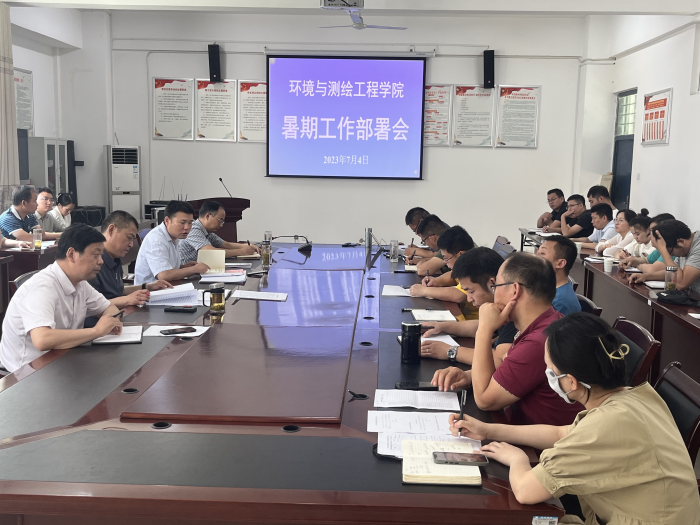 2023年7月4日下午,环测学院在工科楼A315召开暑期工作部署会,学院党委书记胡冰,党委副书记、院长张海洋,党委副书记、纪委书记李建新,教学副院长徐国伟及全体教职工参加会议,会议由张海洋主持。