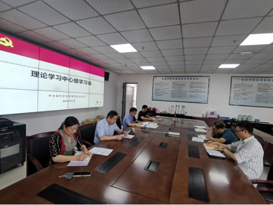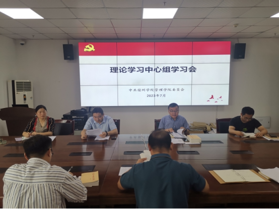 7月4日中午,管理学院在实训楼C301召开理论学习中心组学习会。理论学习中心组成员参加会议。会议由院党委书记蔡若愚主持。