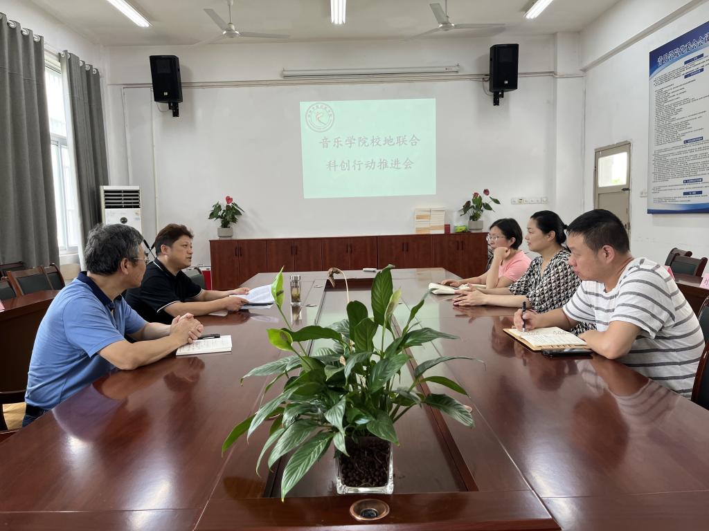 7月22日下午,音乐学院在会议室召开校地联合科创行动推进会,处级干部、办公室主任、科研秘书、教研室主任等参加了会议,会议由音乐学院院长王善虎主持。