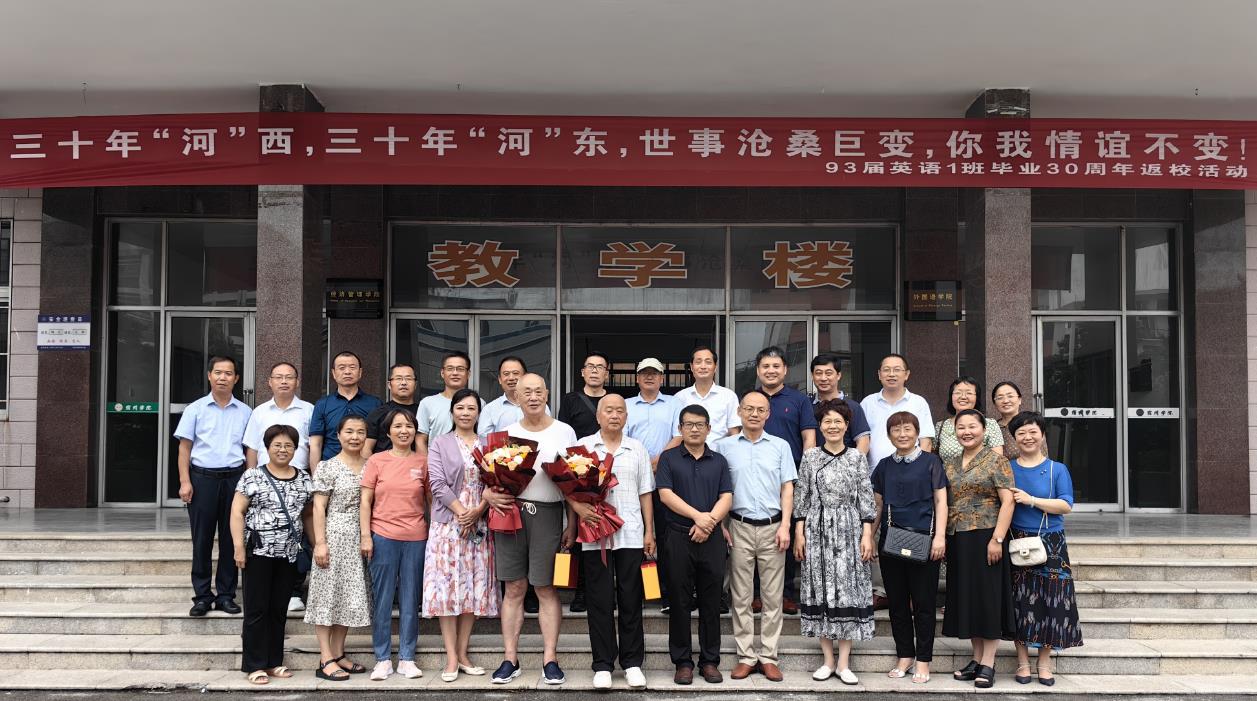 7月30日,外国语学院1993届英语1班校友毕业三十年重返母校活动顺利举行。外国语学院院长张雁凌、党委书记郝景东、副院长胡永近和校友办工作人员等热情接待返校校友。
