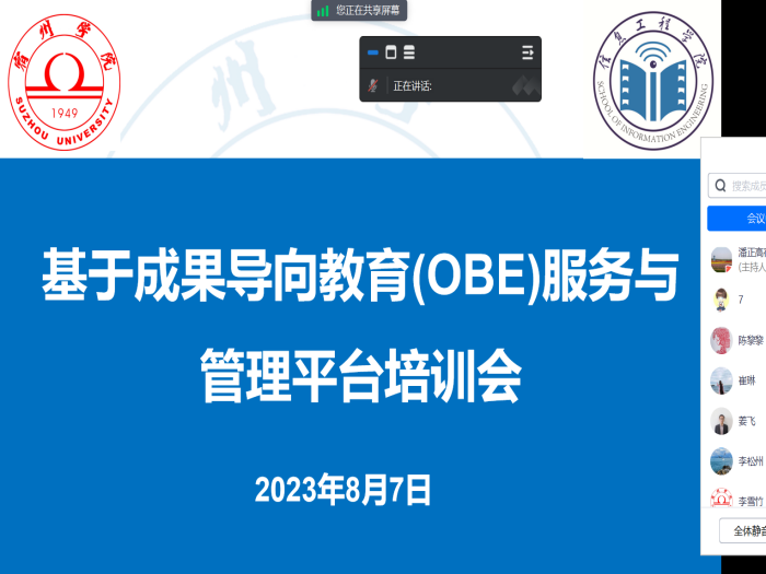 为了进一步推进软件工程专业工程教育认证工作,2023年8月7日,信息工程学院采用线上方式召开基于成果导向教育(OBE)服务与管理平台培训会。河北地质大学教授赵占芳、信息工程学院全体教师参加了此次培训。会议由信息工程学院教学副院长潘正高主持。