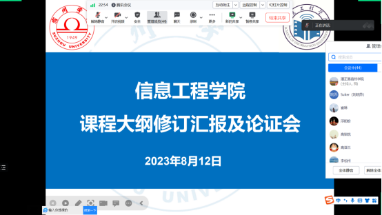 为了适应工程教育认证的需要,进一步落实学校关于课程大纲修订的最新要求,8月12日,信息工程学院以线上会议方式召开课程大纲修订汇报及论证会。信息工程学院党政领导班子、科级干部、教研室主任、专业负责人、辅导员以及全体专业教师参加了会议,会议邀请了河北地质大学教授赵占芳作为校外专家参加了课程大纲修订论证。会议由信息工程学院教学副院长潘正高主持。