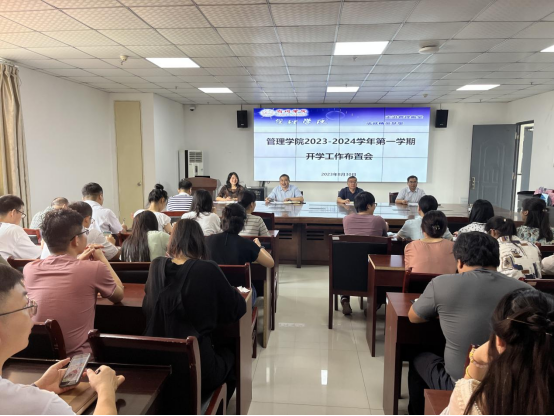 为全力保障开学工作平稳有序开展,提前谋划学院开学各项工作,8月30日上午,管理学院在实习实训楼C301会议室召开了2023-2024学年第一学期开学工作布置会,学院领导及全体教职员工参加会议,会议由院长韩传龙主持。