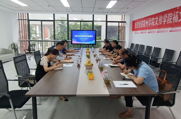为深入推进宿州学院数字媒体产业学院建设、落实“4510”校地联合科创行动。8月28日上午,文学与传媒学院党委书记杨文艺、党委副书记刘影、副院长满建、分团委书记王磊、科研秘书张琳及学院文化产业管理专业任课教师等,赴宿州微风传媒公司开展校企对接活动。