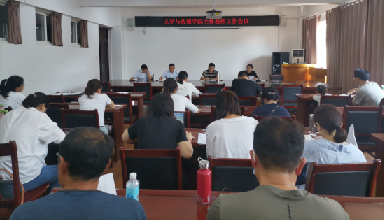 8月31日下午,文学与传媒学院在教A303召开全体教师开学工作会议,党委书记杨文艺,党委副书记、院长张德岁,副院长李娟,副院长满建及全体教师参会。会议由张德岁主持。