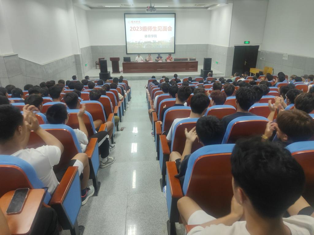 2023年9月11日下午,体育学院开展2023级师生见面会,体育学院全体新生和教师参加本次会议。会议由体育学院党委副书记王德玉主持。
