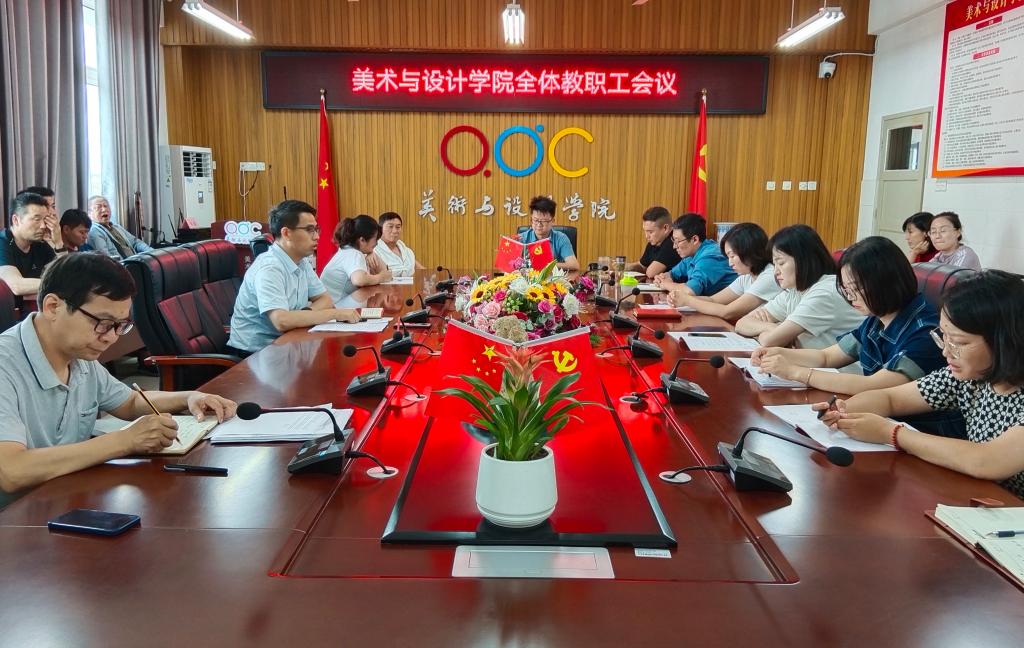 2023年9月14日下午,美术与设计学院在会议室召开全体教职工会议,会议由院党委副书记、纪委书记边洪强主持,院党委副书记、院长许兴海及全体教职工参加会议。